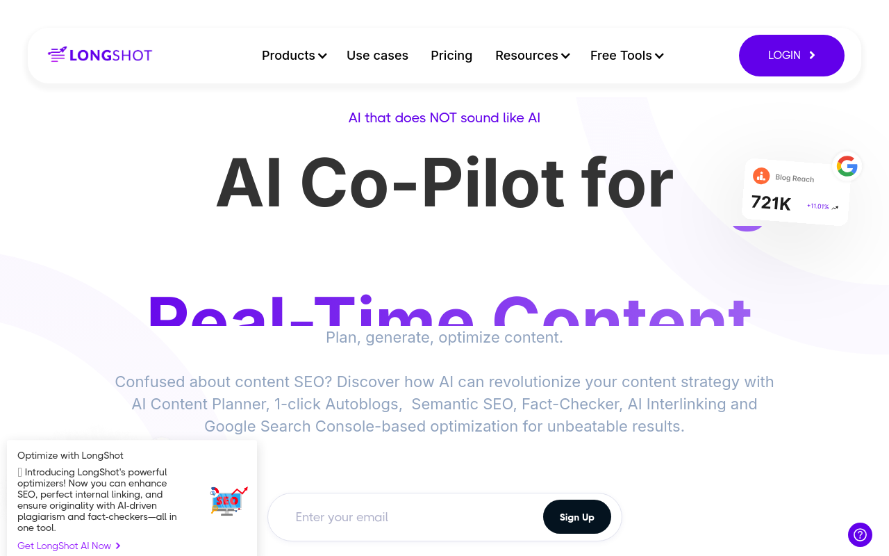 LongShot AI是一款专为内容创作者设计的AI写作平台,集内容研究、生成、事实核查与SEO优化于一体。它通过FactGPT等技术确保信息准确,支持博客、营销文案等多种内容类型,帮助营销人员、博主和企业高效创作可信赖的长篇内容。