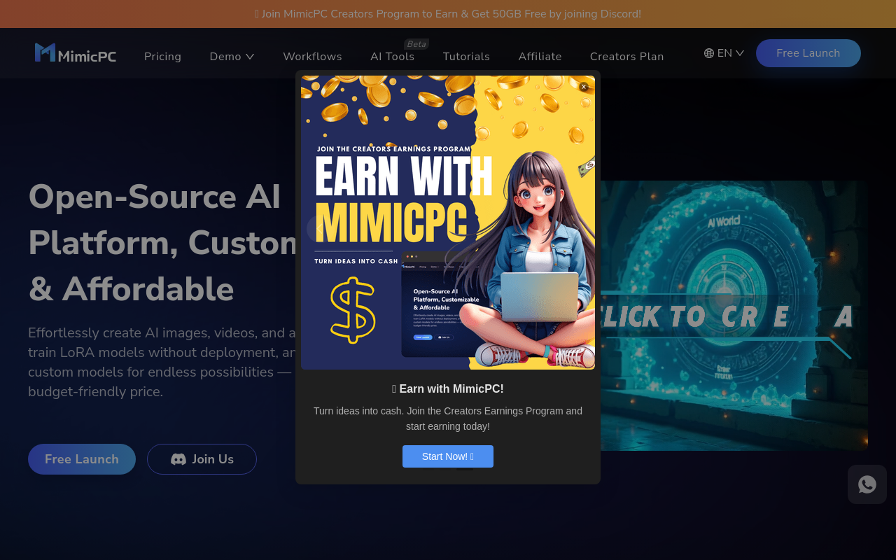 MimicPC是一个基于云的开源人工智能平台,它让使用AI工具变得像打开网页一样简单。无论是生成一张奇幻的图片、制作一段视频,还是训练一个属于自己的模型,你都不需要准备昂贵的显卡或进行复杂的安装。它的目标是降低AI的使用门槛,让创意先行。