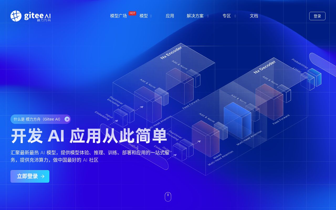 模力方舟(Gitee AI)是Gitee(码云)推出的AI模型服务平台,隶属于开源中国。这个平台想做的,就是让开发者玩转AI模型变得更简单——从在线试试效果,到拿来推理训练,再到最终部署到你的应用里,它都想帮你包圆了。