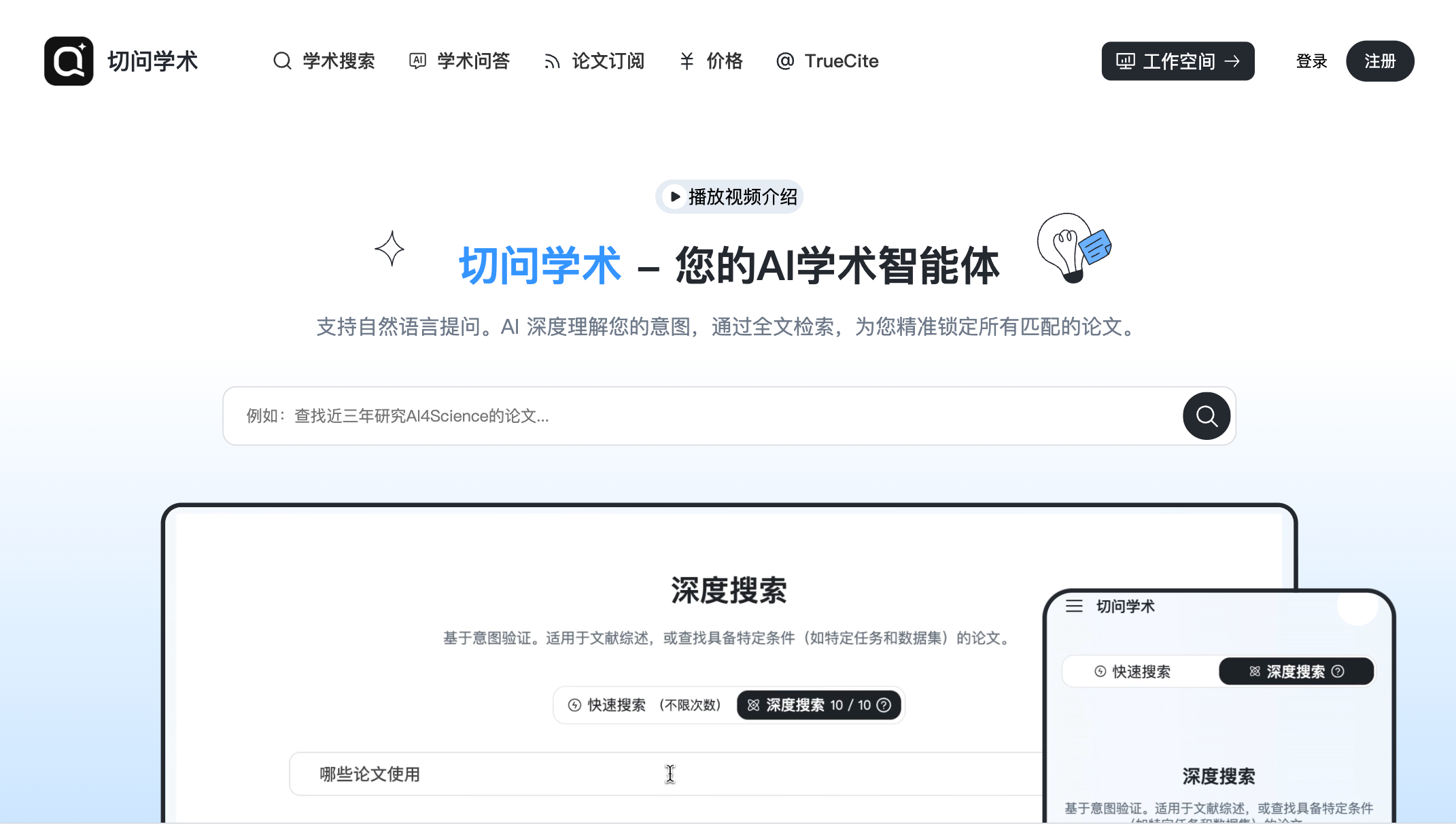 切问学术是一款基于“意图验证”理念开发的AI学术工具。它与知网、维普等传统关键词检索工具不同,核心在于用自然语言交互。你可以直接描述需求,AI会理解意图,通过全文检索在海量论文中精准定位。平台集文献检索、知识管理和前沿追踪于一体,为科研工作者、学生和教师提供全流程支持。
