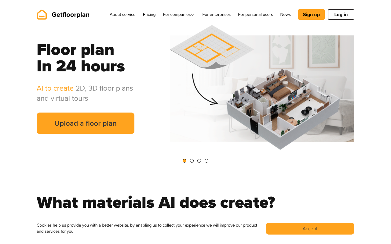 GetFloorPlan.com 是一个用人工智能帮你画图的网站。如果你手头只有一张潦草的草图、一张照片,或者一份老旧的平面图,它就能自动识别房间布局,给你变出专业的2D和3D效果图,甚至生成可以“走进去”看的360度虚拟游览。这活儿以前得找设计师花不少钱,现在让AI来干,快多了。