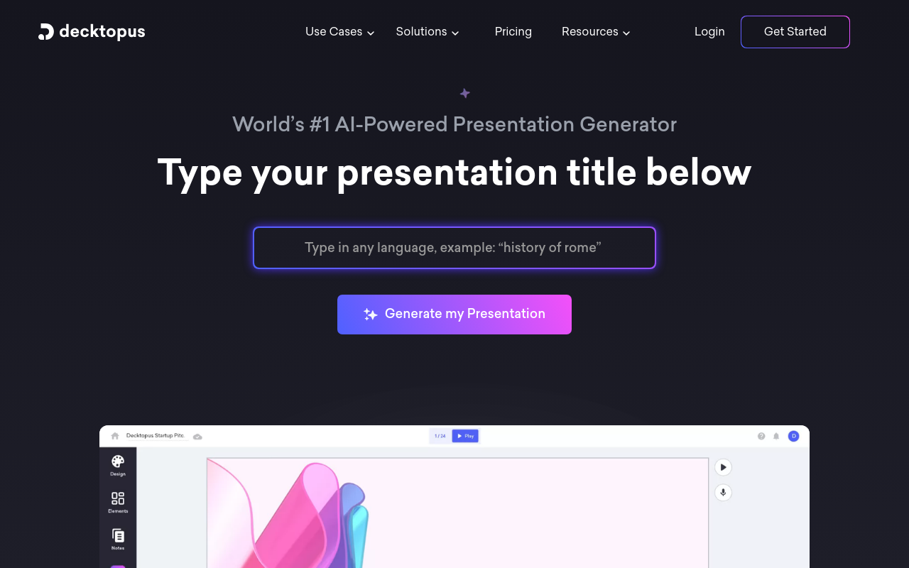 Decktopus(官网)是一个用人工智能帮你做PPT的在线工具。它的目标很明确:让你别再为排版配色头疼,把精力放回内容本身。