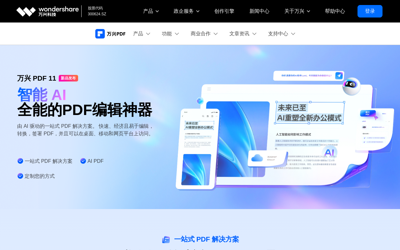https://pdf.wondershare.cn 是万兴PDF(PDFelement)的官方网站,这里提供关于PDF文档处理的一站式解决方案。