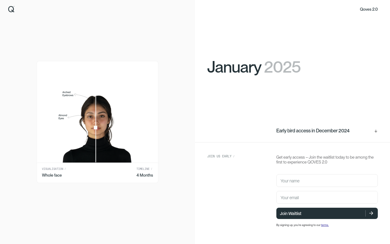 QOVES是一个专门研究面部美学的在线平台。它把人工智能、科学数据和多种美学理论结合起来,帮你客观地分析自己的长相,并给出个性化的改善建议。简单说,它想帮你不用动刀就能“变好看”,或者为那些考虑整形的人提供科学的参考依据。