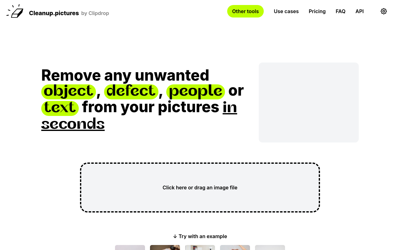 想从照片里抹掉一个碍眼的路人甲,或者去掉讨厌的水印,但又不想打开复杂的专业软件?Cleanup.pictures 就是为你准备的。它是个在线工具,核心是AI图像修复技术,你只需要用画笔涂抹想消失的东西,剩下的交给AI去智能填补背景,效果通常很自然。对,就像魔法橡皮擦。