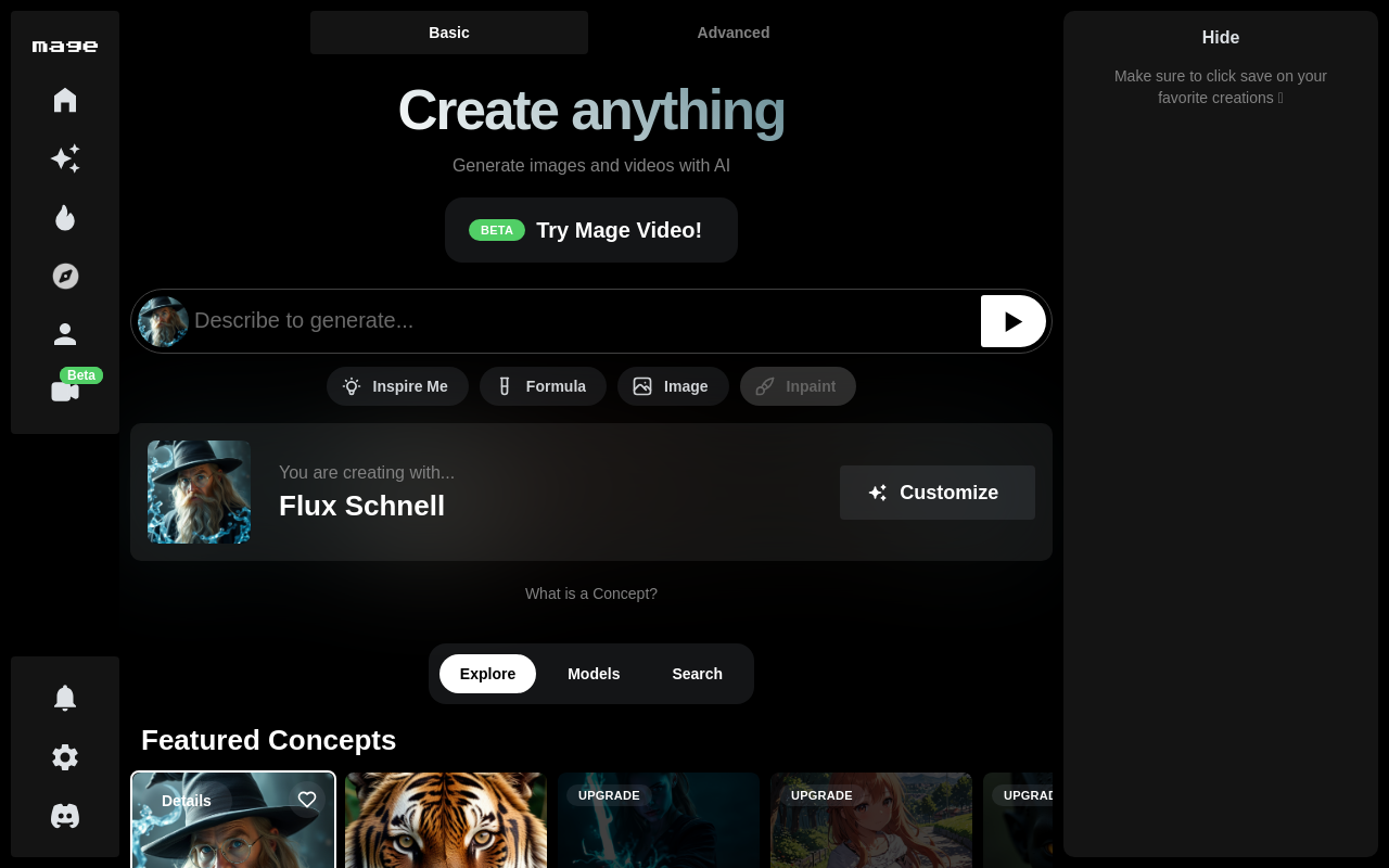 Mage.space 是一个基于Stable Diffusion模型的AI图像生成平台。你输入一段文字描述,它就能生成对应的图像、GIF甚至短视频。无论是想画个未来都市,还是把自家猫咪变成卡通角色,它都能试试看。