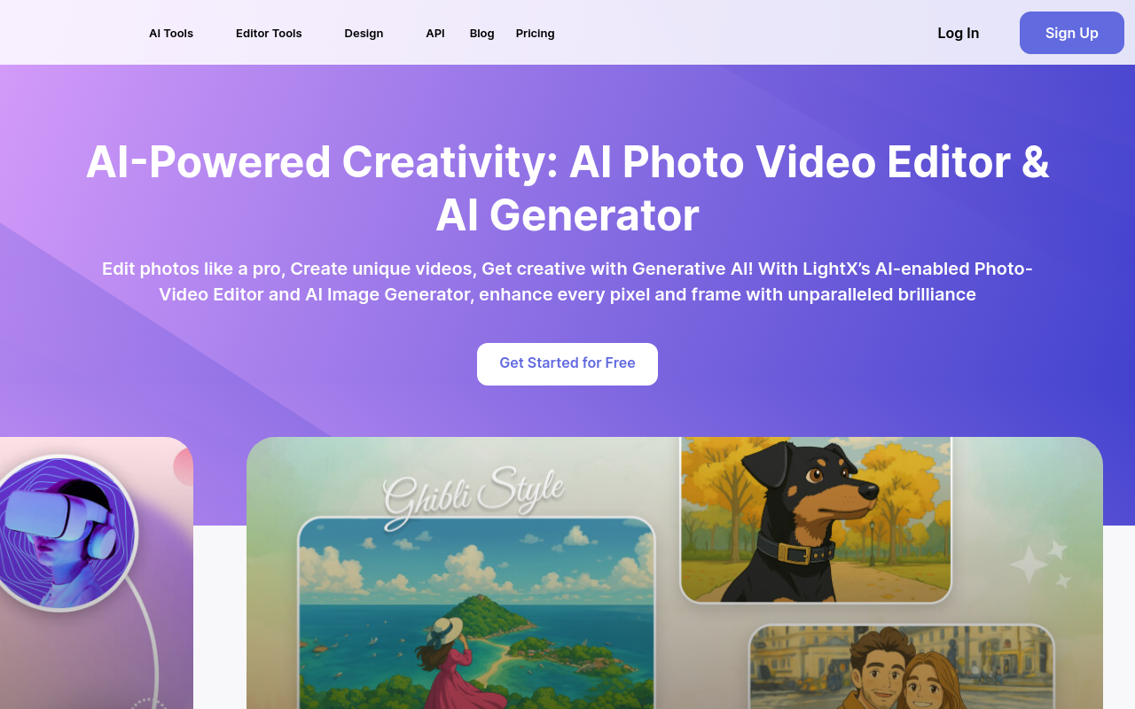 LightX 是一个在浏览器里就能用的免费照片和视频编辑工具,它把各种 AI 驱动的功能打包在一起。你可以用它快速修图、生成艺术内容、制作视频,或者搞点社交媒体素材。界面挺直观,不用装软件,手机电脑都能用,有免费功能也有付费的高级选项。它的目标很简单:用 AI 把那些复杂的编辑步骤变简单,让你几秒钟就能弄出看起来挺专业的效果。