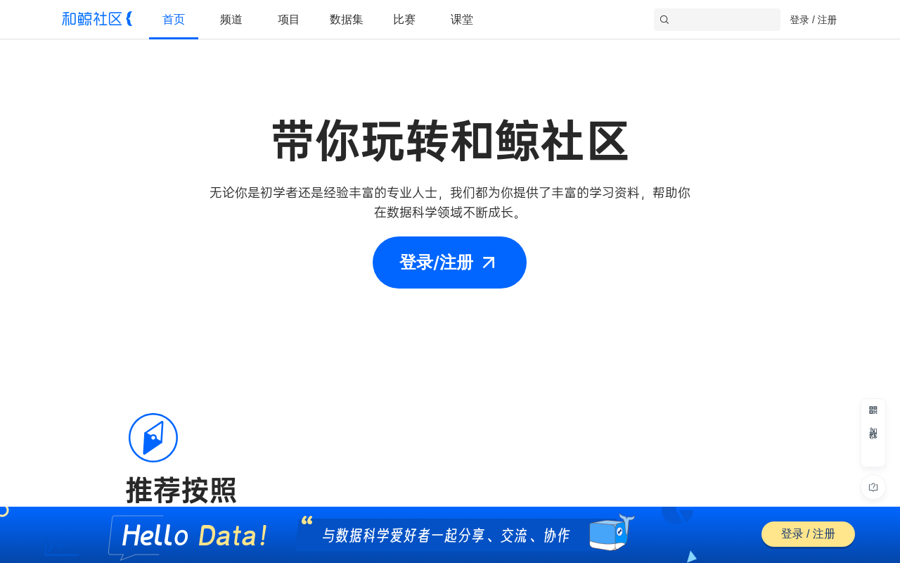 和鲸社区(Heywhale.com)是一个为数据人才打造的综合性平台,集成了云端工具、专业竞赛和活跃社区,让学习、实践和交流变得更简单。