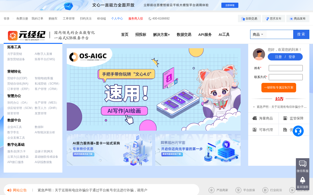 元经纪是一个服务于元宇宙与人工智能领域的平台,主要面向技术开发者、创业者和相关企业。平台整合了行业内的产品与服务资源,旨在简化采购流程,并提供项目对接支持。
