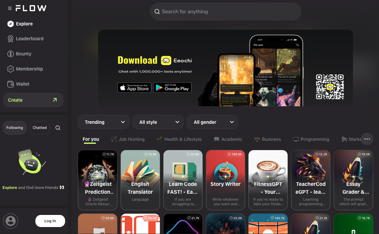 FlowGPT 是一个基于生成式AI的开放平台,你可以把它想象成一个AI应用的大集市。在这里,每个人都能轻松地找到、试用甚至自己动手搭建基于大语言模型的AI小工具。