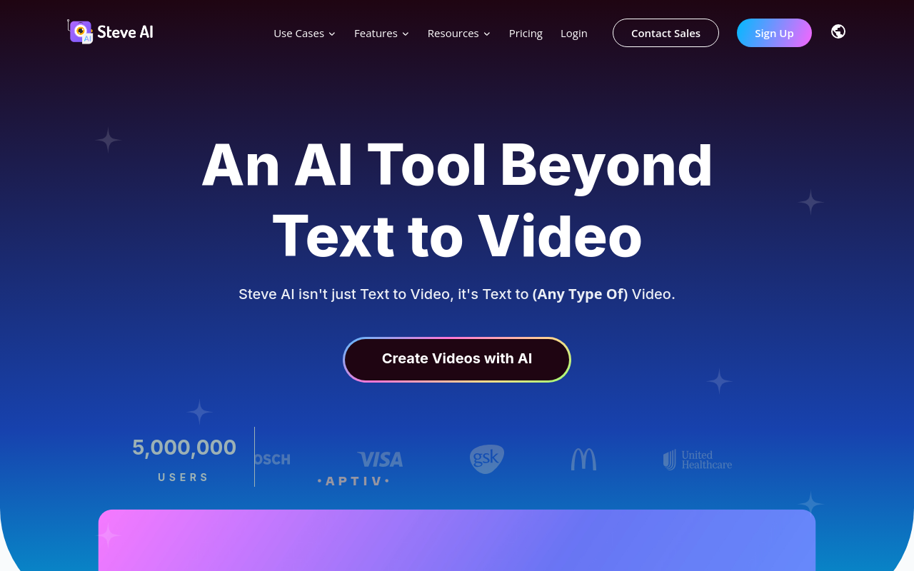Steve AI 能干的事儿不少,主要围绕怎么把你手里的各种“原材料”变成视频。
