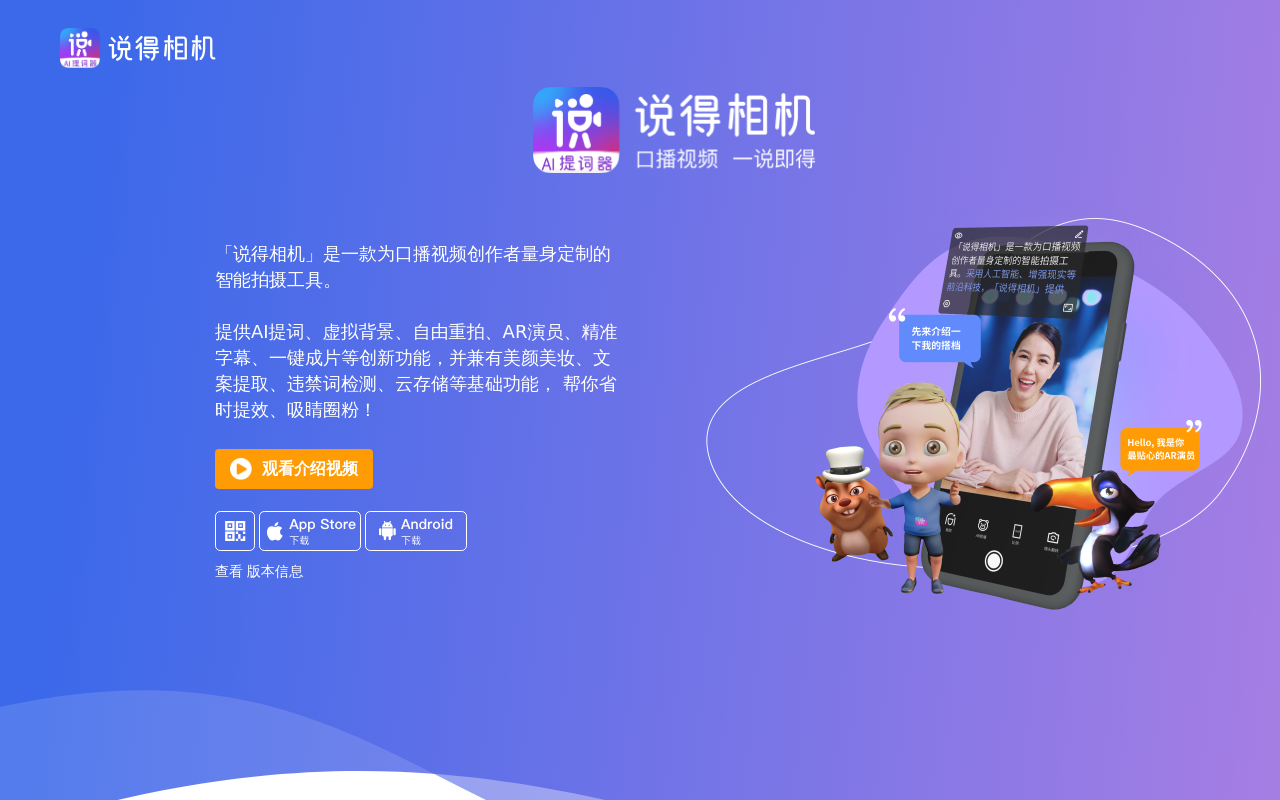 视见睿来推出的说得相机,是一款专为口播视频创作者设计的智能工具。它集成了AI悬浮提词、虚拟背景实时切换、AR虚拟演员互动、精准字幕生成和一键自动剪辑等核心功能,同时提供美颜、文案提取和云存储服务。适用于知识分享、直播带货、教育培训等多种场景,帮助自媒体、主播和企业用户高效完成视频创作,减少后期工作量。