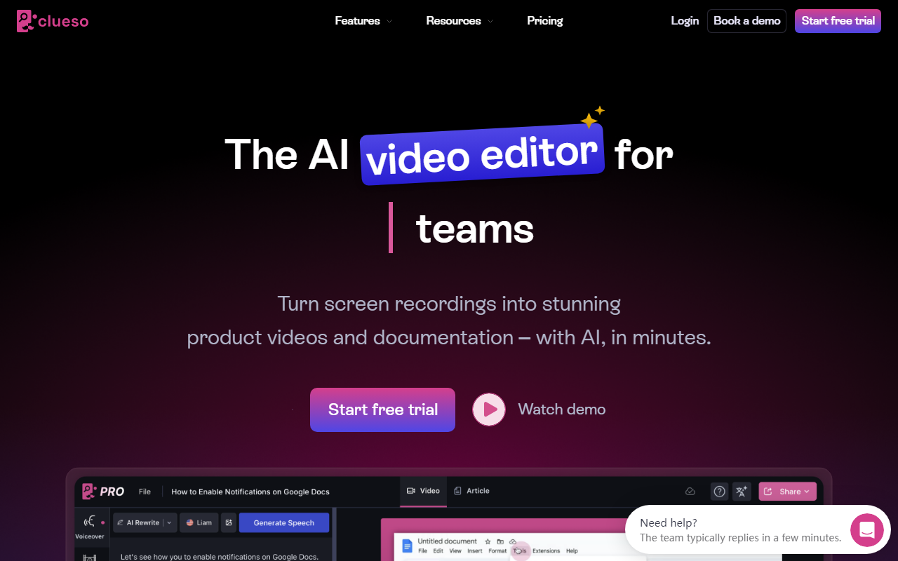 Clueso不是给个人玩家用的普通视频工具,它是专门为企业团队设计的“内容生产加速器”。主要聚焦在软件类内容的创作上,比如产品演示、操作教程、流程说明这些。它覆盖了从视频制作、文档生成,到适应不同场景和团队协作的完整链条,帮助企业把内容创作做得更规模化、更标准,也更高效。