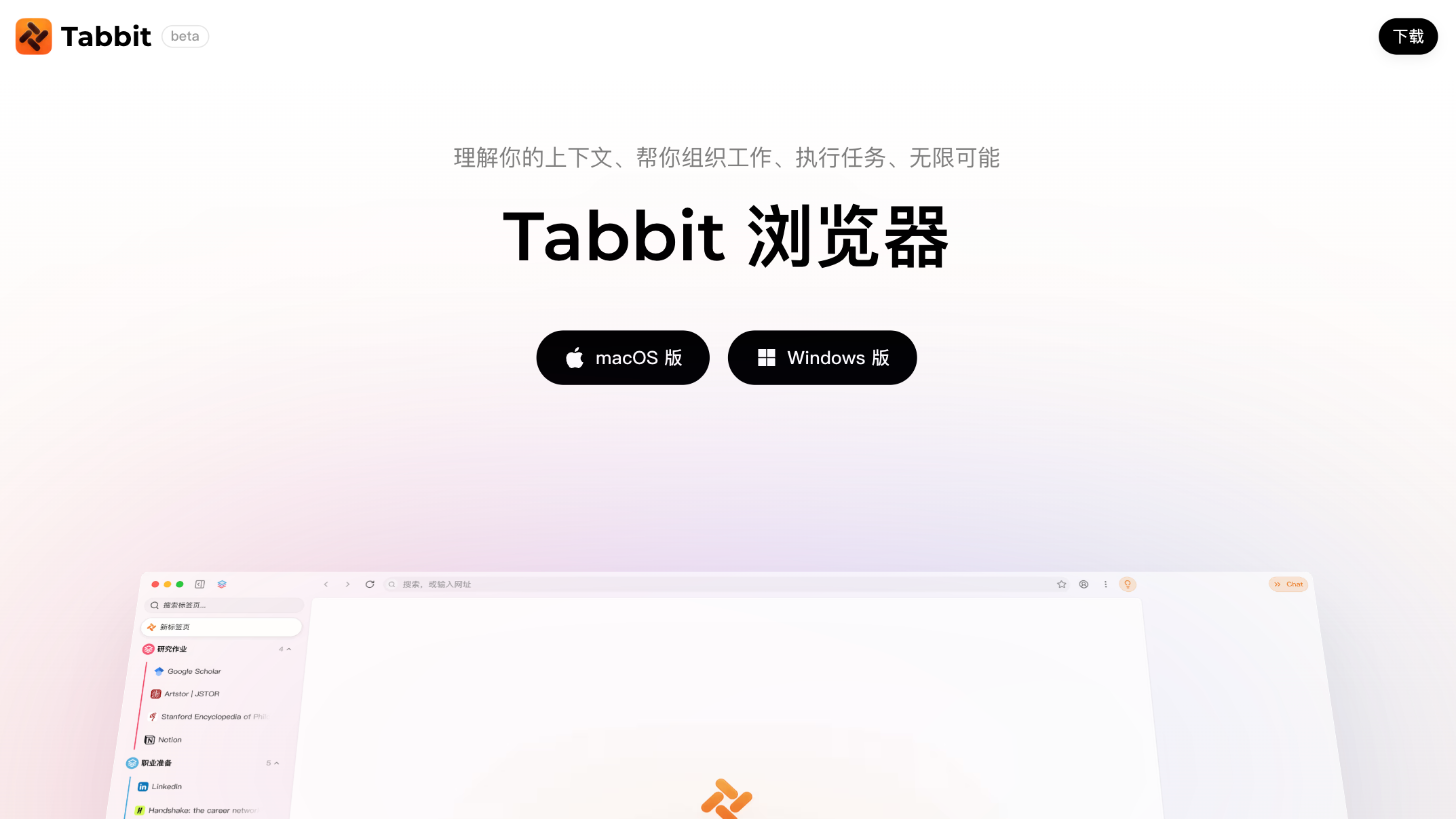 Tabbit把自己定位成你的AI工作伙伴,而不仅仅是个看网页的工具。它把国内几款主流大模型都塞进了浏览器里,让你在查资料、写东西、做研究的时候,能直接让AI帮忙处理眼前的网页内容。目前它还在公测,对Mac用户免费开放。