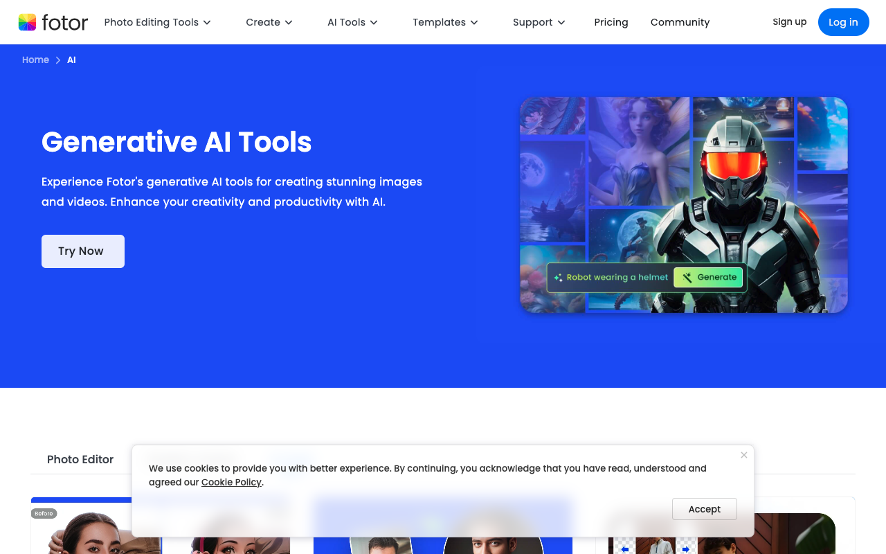 Fotor 是一个集成了人工智能技术的在线照片编辑和图形设计平台。它提供一键增强、背景移除、AI 图像生成、视频制作和幻灯片创建等多种功能,适合摄影爱好者、设计师和普通用户快速处理图像、创作视觉内容。平台支持网页版和移动应用,操作简单,无需专业软件知识。