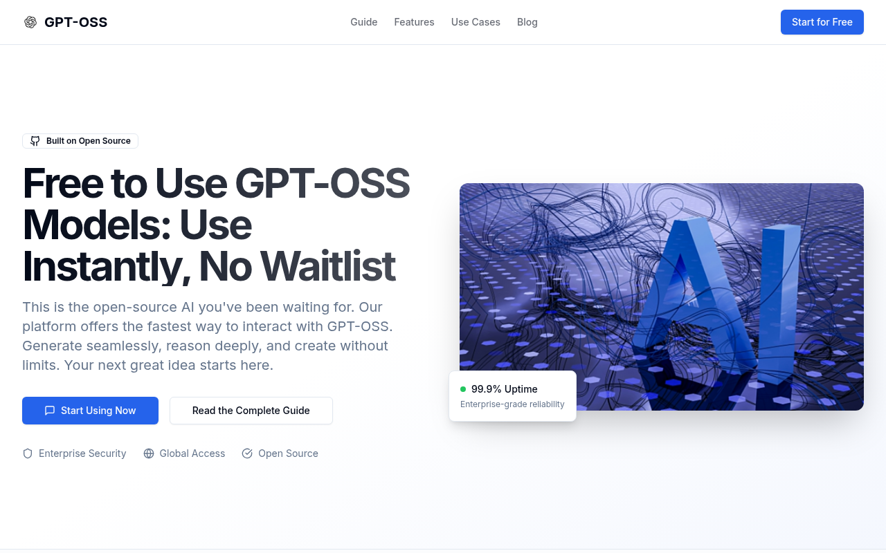 访问 gptoss.ai,你就能直接使用基于OpenAI开源技术的AI模型。这个平台主打“无等待列表、即时使用”,就像一个随时待命的AI助手,无论是闲聊几句还是处理正经工作,它都能接得住。