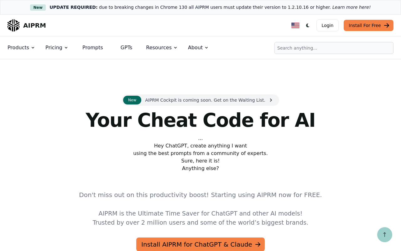 AIPRM 是一个为AI模型(如ChatGPT、Claude、Midjourney等)提供提示管理工具的平台,有人戏称它为“AI的作弊代码”。