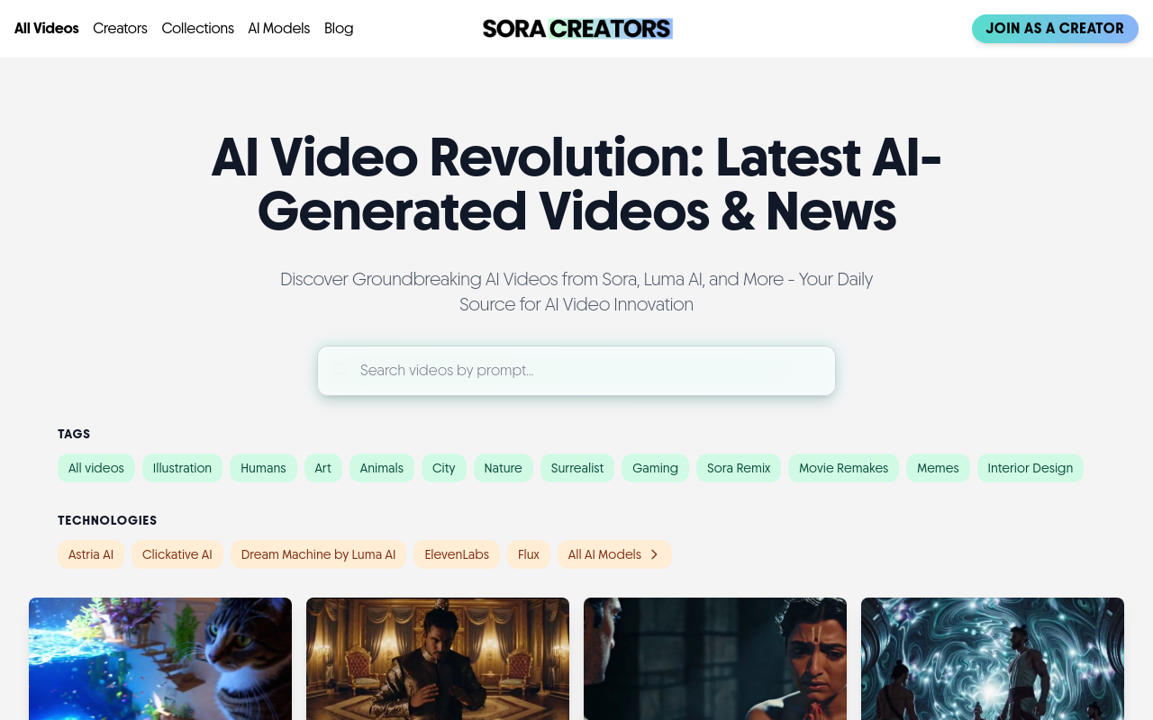 Sora Creators是一个专门玩转AI生成视频的地方,无论你是想用AI做点酷炫短片的内容创作者,还是对背后技术好奇的开发者,这里都能找到些灵感。