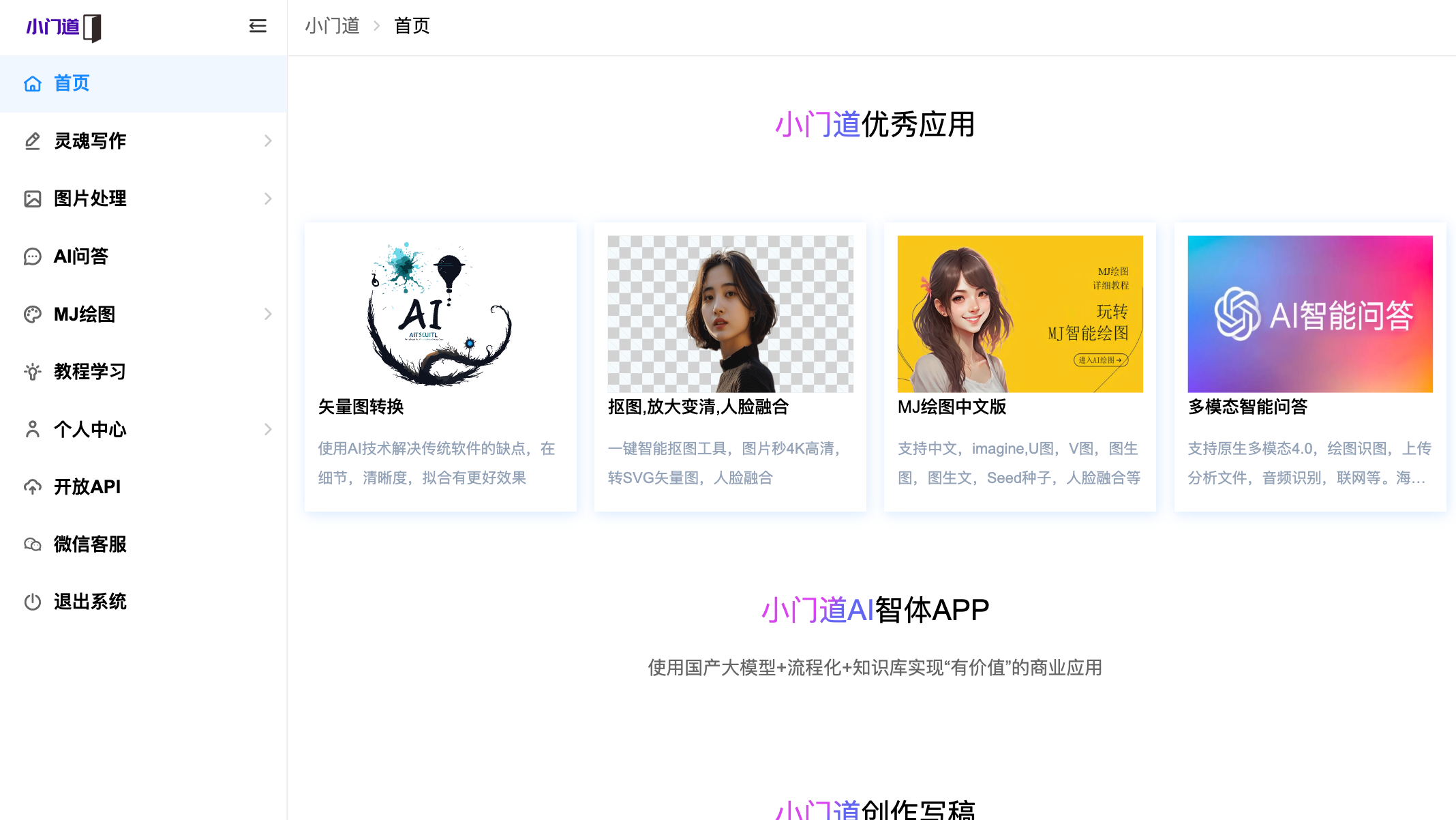 小门道AI是一个一站式综合AI工具网站,主打AI绘画、图像处理、智能问答和AI写作四大核心能力。它面向普通用户、内容创作者、设计师和办公人群,提供轻量化、低成本且中文友好的服务,直接在网页上就能用,省去了下载安装的麻烦。