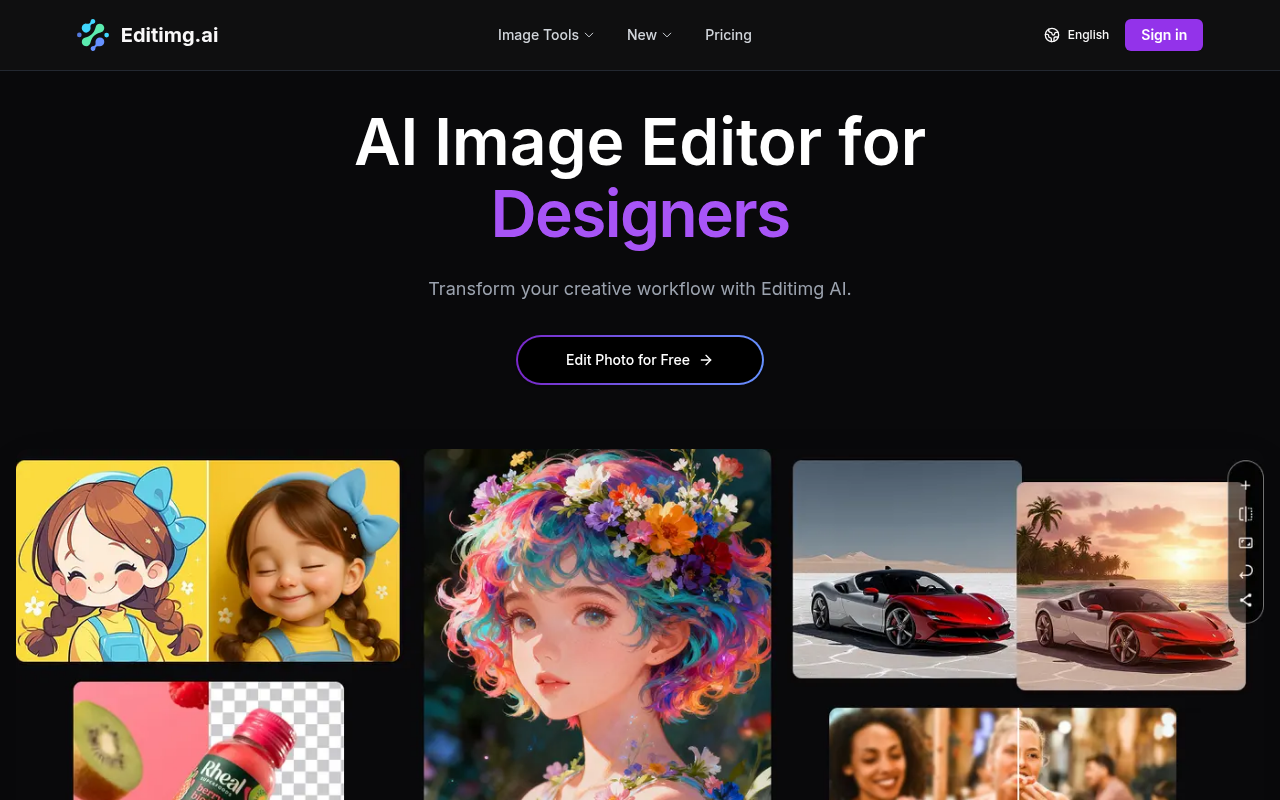 Editimg.ai 是一个在线AI图像编辑平台,它的想法很简单:把那些复杂的专业修图软件操作,变成普通人也能上手的简单指令。你不需要懂什么图层、蒙版或者曲线,只要上传图片,告诉AI你想做什么,比如“把背景换成海滩”或者“把这张草图变成真实照片”,它就能帮你搞定。无论是设计师赶稿、电商店主处理产品图,还是普通人想美化一下旅行照片,都能在这里找到合适的工具。