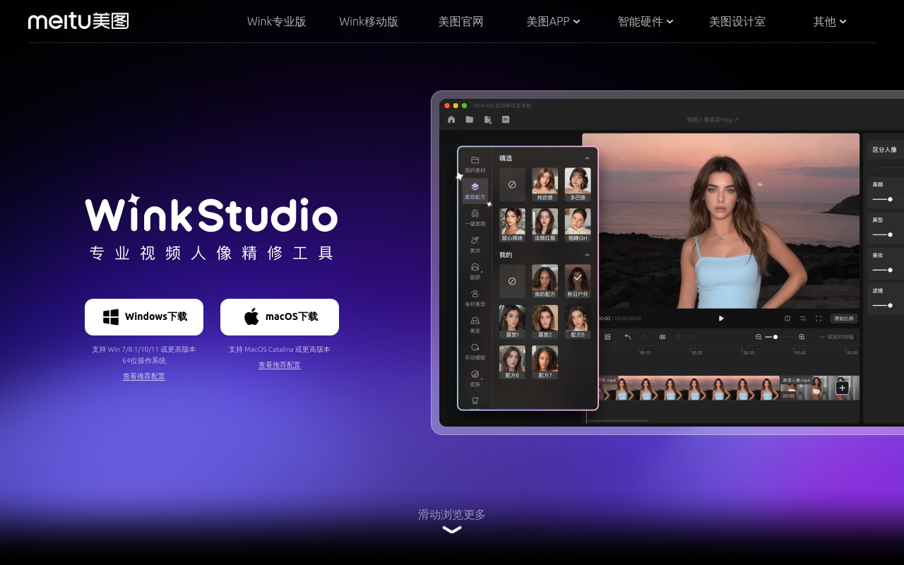WinkStudio是美图公司推出的AI视频编辑软件,提供移动端和桌面端版本。它能一键修复模糊视频至4K高清,支持瘦脸、美白、大眼等逐帧人像美化,并具备自动字幕、视频防抖、滤镜模板等编辑功能。适合短视频创作者、社交媒体用户快速提升视频质量。