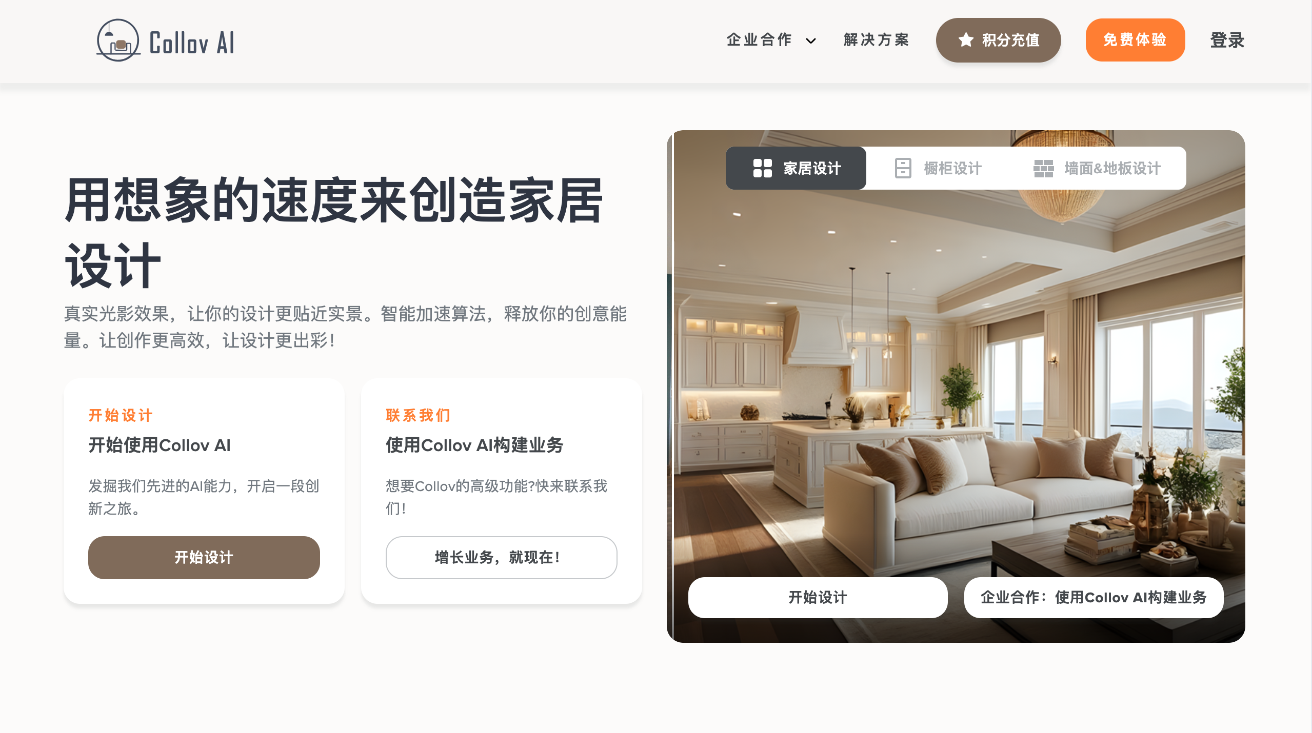 1. 注册试用:访问 collov.cn,注册账号可以免费体验生成几张效果图。