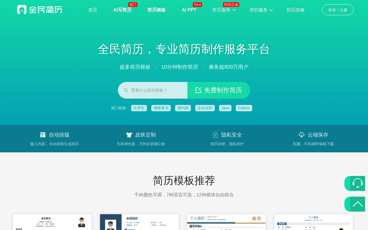 全民简历网(https://www.qmjianli.com)是一个求职服务平台,主要帮助用户制作简历和规划职业发展。