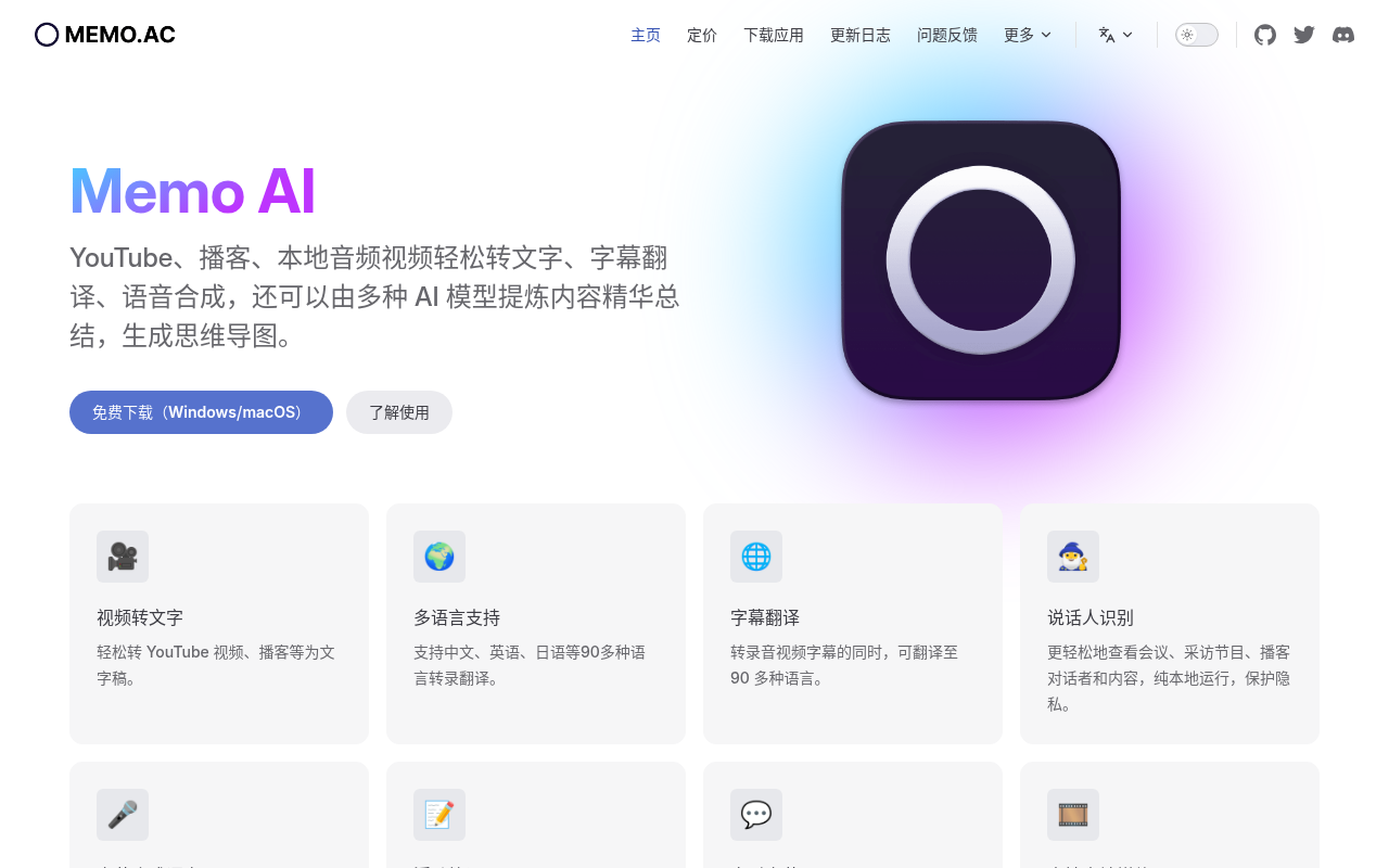 Memo AI 是一个在你自己电脑上运行的AI工具。它不依赖网络,主打一个“本地离线”,帮你把各种音频视频变成文字,还能翻译字幕、合成语音,甚至用AI帮你提炼重点、画思维导图。无论是YouTube视频、播客节目,还是你电脑里的MP3、MP4文件,它都能处理,特别适合需要啃下外语会议录音或课程视频的朋友。
