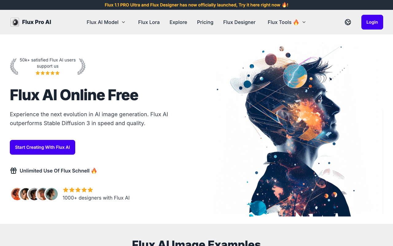 FluxPro.ai是一个基于FLUX.1 AI模型的在线图像生成平台,支持文本到图像、图像到图像等多种生成方式。提供FLUX.1 Pro、Dev、Schnell等多个模型变体,满足从快速尝试到专业创作的不同需求。用户可通过简单的文字描述,在几秒内生成高分辨率图像,适用于艺术创作、设计素材和商业用途。平台界面直观,并提供免费在线体验。