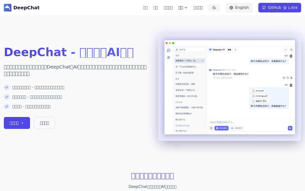 开发者:将DeepChat作为AI聊天组件,集成到自己的应用中,用于构建智能客服、代码助手或内容生成工具。