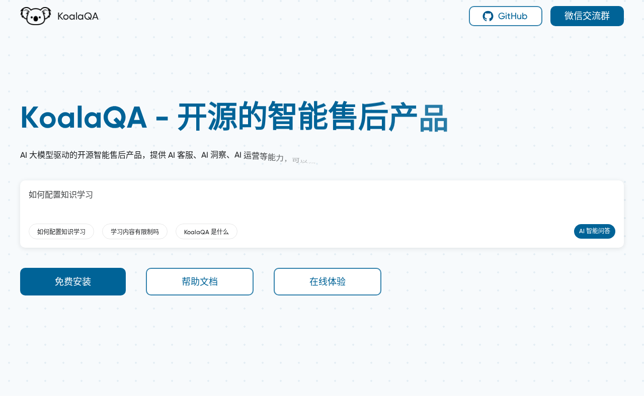 这是长亭百智云旗下开源智能售后产品 KoalaQA 的官方文档站,提供从产品认知、一键安装、AI模型接入、知识库配置到功能详解的全流程指引。文档结合了官方教程与社区真实问题解答,旨在帮助开发者、运维及技术支持团队快速落地智能客服、社区问答等场景,降低售后人力成本。