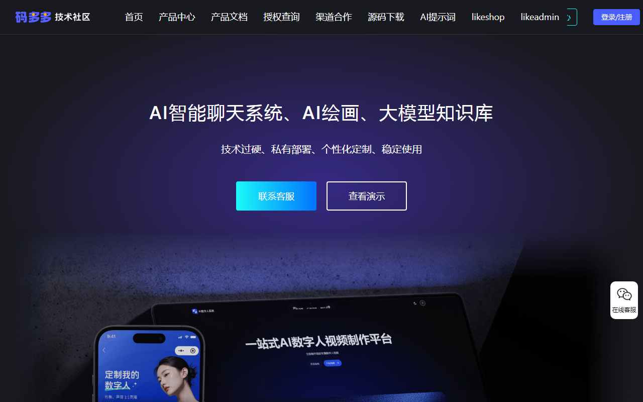 https://www.mddai.cn/ 是码多多(MDD AI)的官方网站,由南京码多多科技有限公司运营。这个平台主要做一件事:把AI系统打包成源代码,让你可以直接拿去用或者自己改。无论是想做个智能客服,还是需要帮手写论文、画张图,这里都有现成的工具和代码。