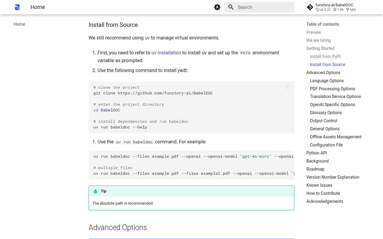 BabelDOC 是funstory-ai开发的开源PDF科技论文翻译与双语对照工具库(基于yadt开源库)的官方文档与使用指引站点,核心聚焦解决科技PDF翻译中格式错乱、公式/专业术语处理不佳、多端适配难等痛点,为科研人员、学生、开发者提供高保真的PDF翻译能力,支持在线使用、本地部署、嵌入式开发三种模式,主打保留原文档版式结构的同时实现精准的双语翻译,是专为科技文献打造的AI翻译解决方案。