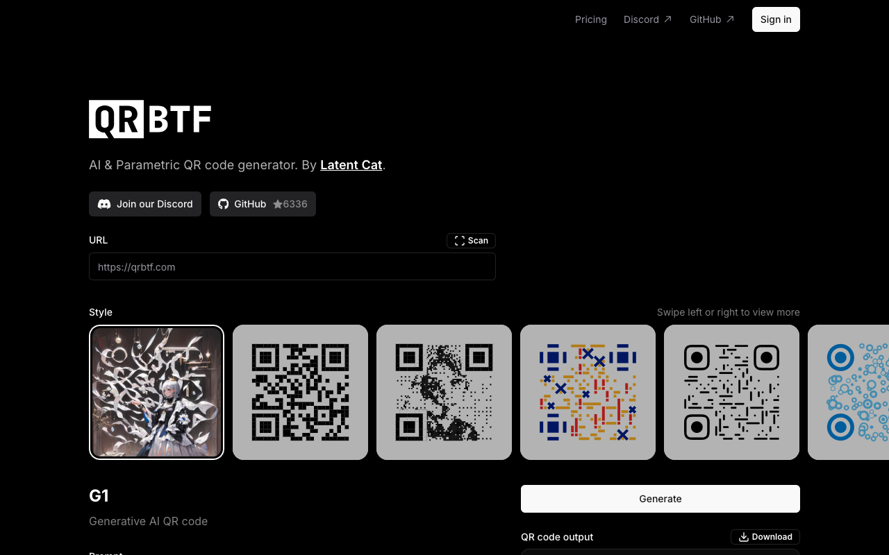 QRBTF(https://qrbtf.com)是一个由Latent Cat开发的AI参数化QR码生成器,主要专注于使用AI生成嵌入真实景观或物体图像的QR码。它支持任何语言的关键词输入,能够生成视觉自然且可扫描的QR码图像,通过参数调整平衡扫描性和美观性。