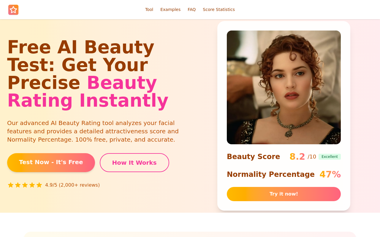 - 技术背景:网站使用 先进的AI算法,可能结合了计算机视觉和深度学习技术,用于识别和评估面部特征。