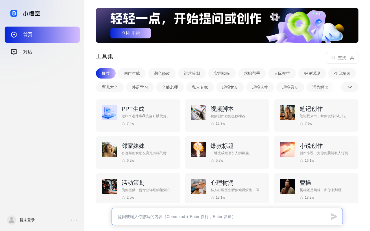 • 用户可通过自然对话或选择预设工具分类快速调用功能,操作门槛低。