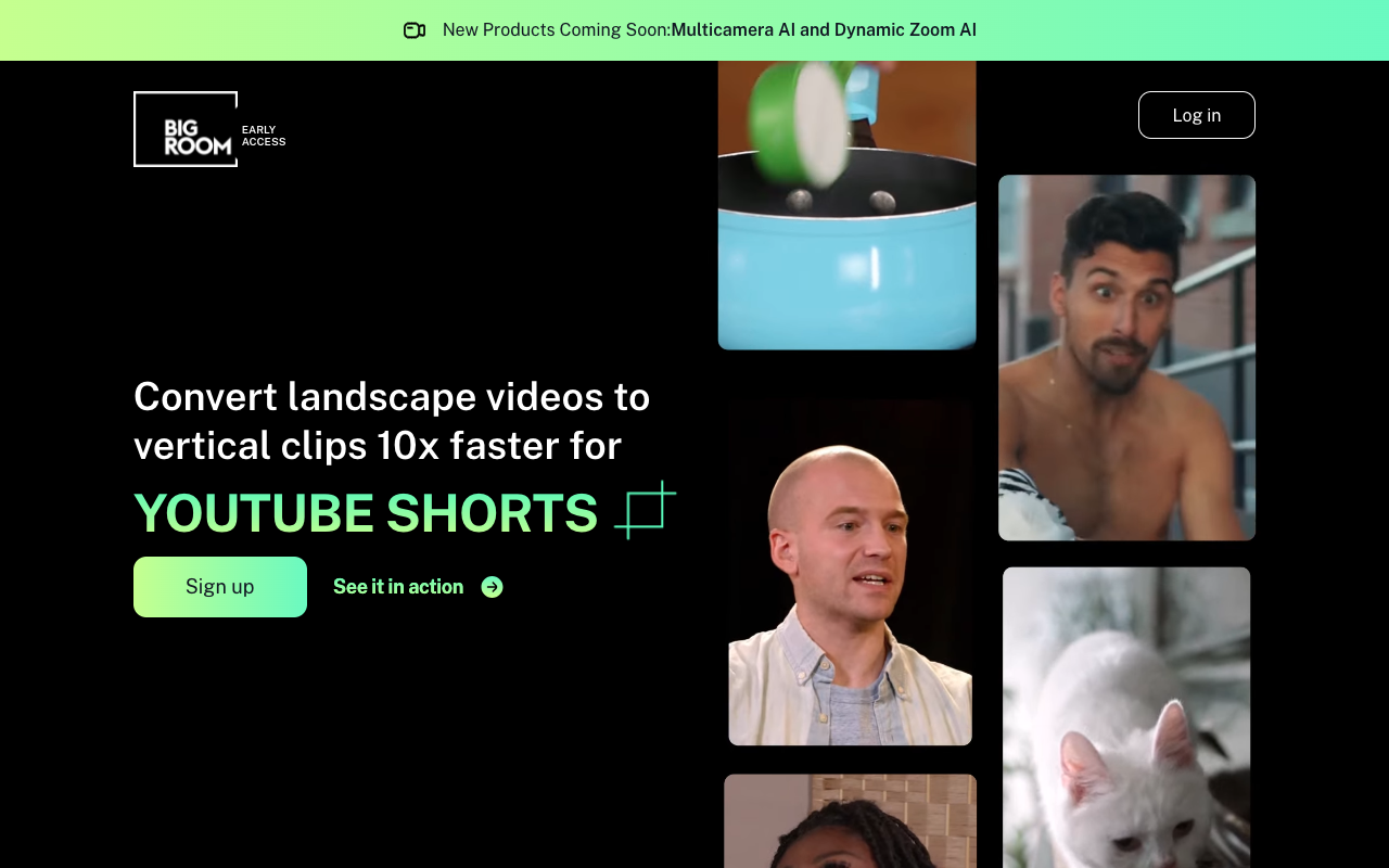 Big Room是一个采用先进人工智能技术的平台,专注于将横向视频转换为竖向格式,完美适配TikTok、Instagram和YouTube等社交媒体。