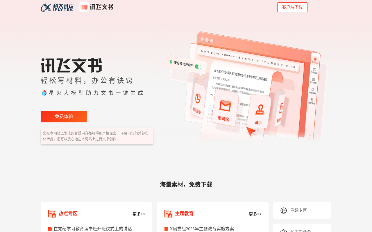讯飞文书提供了一系列功能,覆盖文书写作的各个环节,以下是其核心功能的详细介绍: