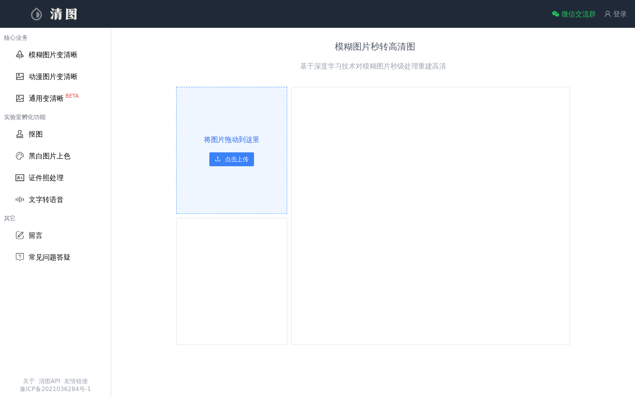 一个基于人工智能技术的在线图像处理平台,专注于将模糊图片快速转换为高清图像,同时提供多种图片优化功能。