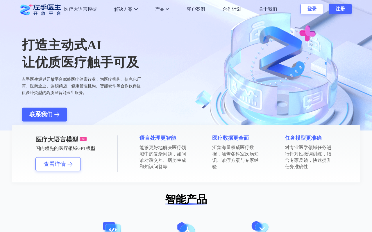 公司开发了医疗大语言模型(ai.zuoshouyisheng.com),用于处理复杂的医疗语言问答,可辅助医生决策或用于患者教育。