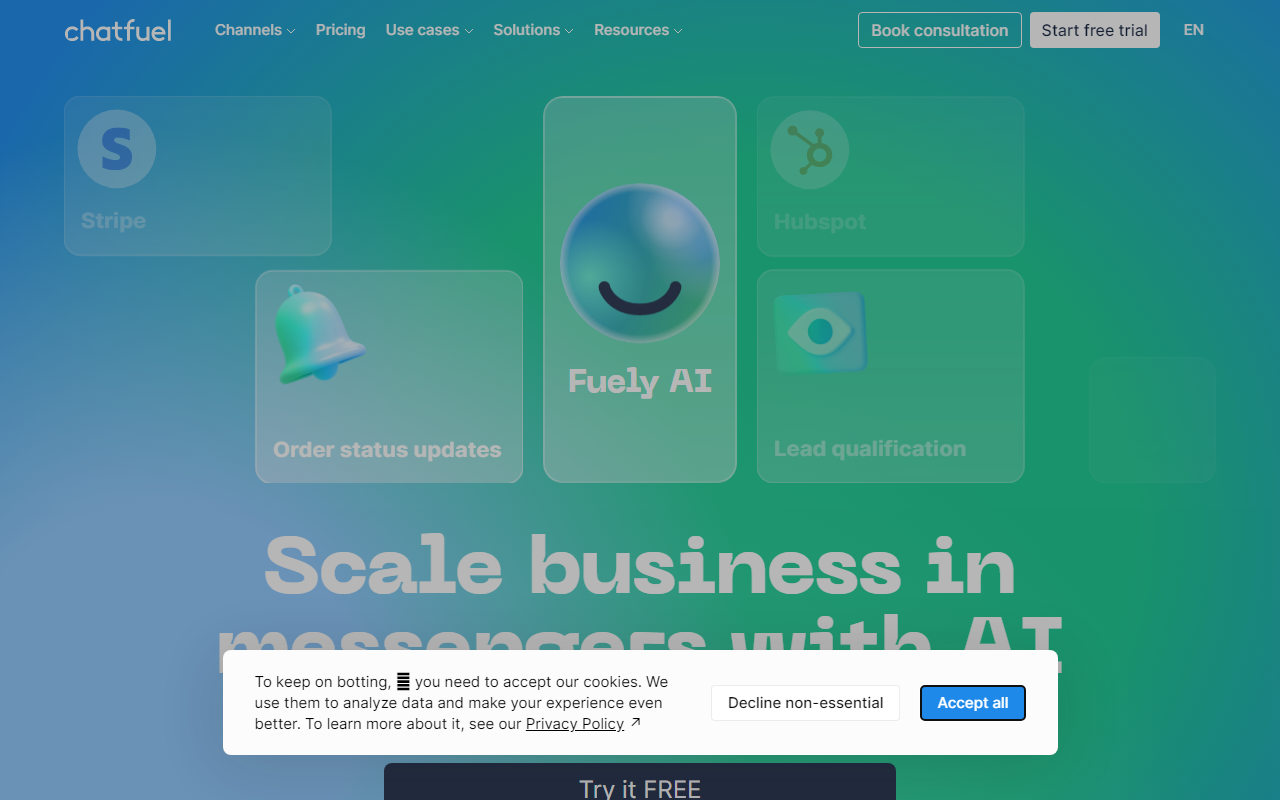 https://chatfuel.com 是一个领先的AI聊天机器人平台,专注于为电子商务和其他业务提供自动化销售和客户支持解决方案。以下是对该网站及其功能的详细介绍: