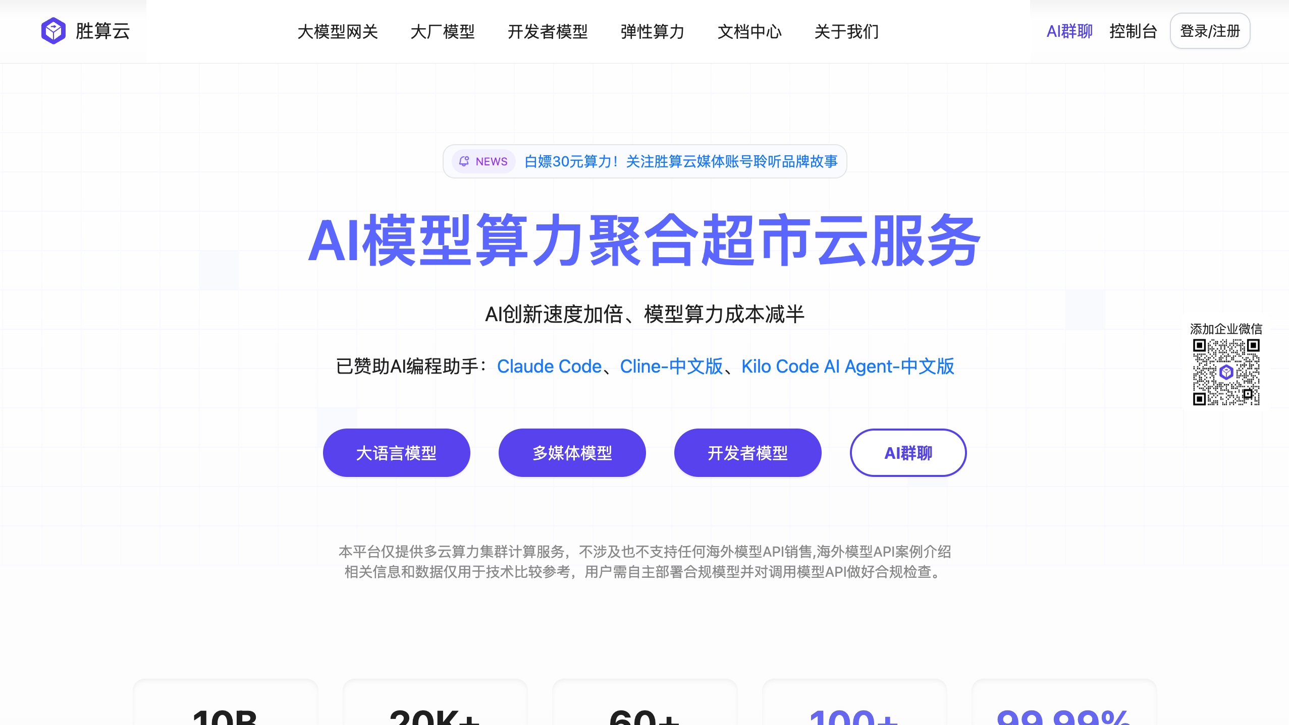 胜算云是一个专业的AI算力平台,由上海胜算速惠云科技有限公司打造。它旨在为AI开发者和厂商提供经济实惠的GPU算力资源,并构建一个集开发与弹性推理于一体的云平台。简单来说,这个网站是一个“AI模型算力聚合超市”,帮助用户更高效、更省钱地调用大语言模型(LLM)、多媒体模型和其他AI工具,避免了传统算力资源的碎片化和高成本问题。