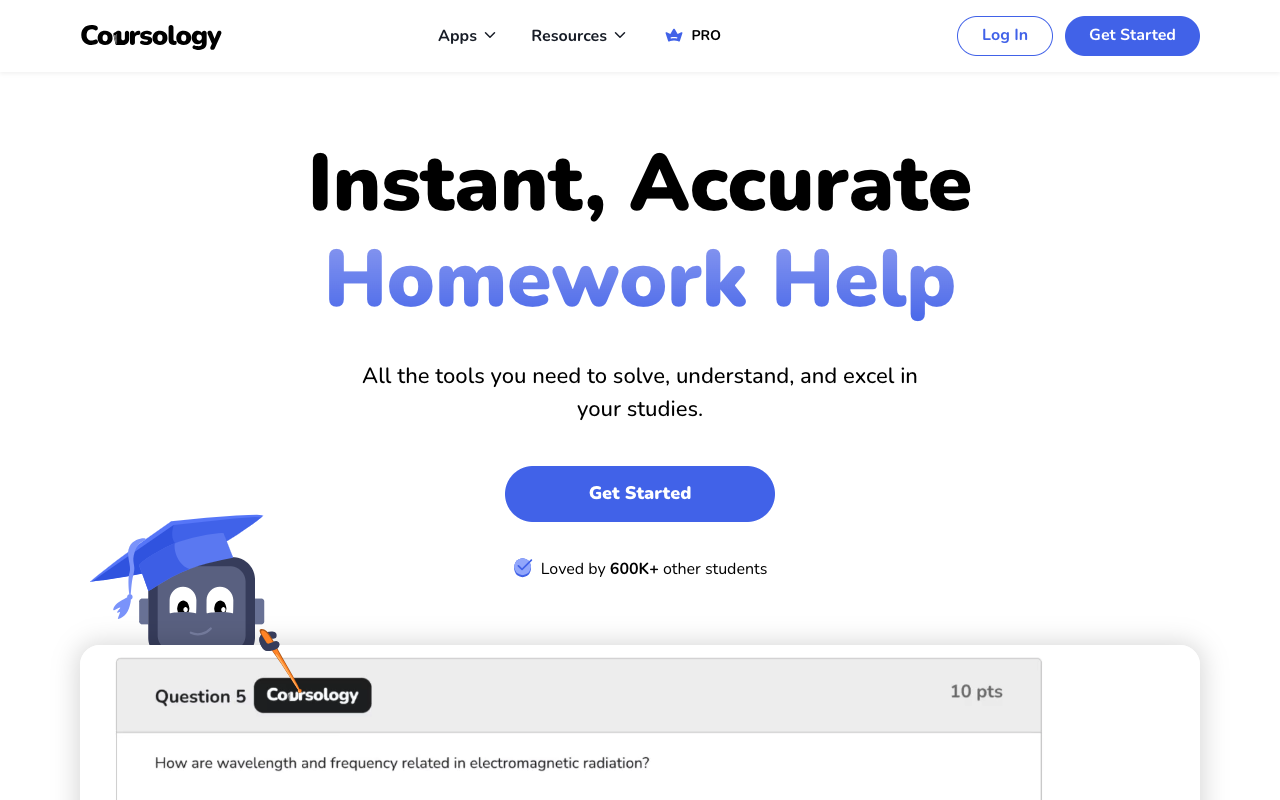 Coursology(https://coursology.com/)是一个**AI驱动的作业辅助平台**,旨在帮助学生高效完成学校作业,提供跨学科的即时答案、逐步解答和个性化学习支持。平台通过**Chrome扩展**、**移动应用**(iOS)和**网页版**提供服务,支持数学、化学、物理、历史、文学等多种学科。Coursology 强调快速、准确和易用,号称已有60万+学生使用其工具提升学业表现。平台提供免费计划和Coursology Pro付费订阅,Pro版本解锁无限制答案、无广告和更多高级功能。