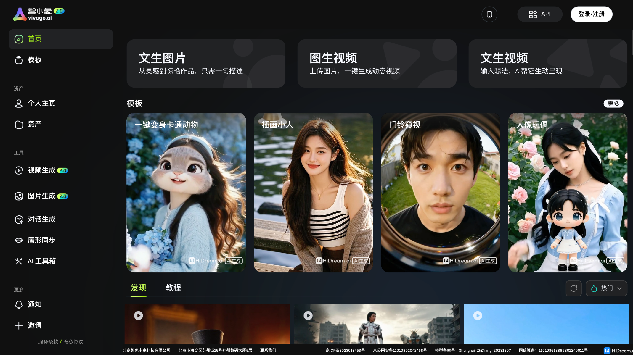 智小象AI(vivago2.0)集成六大模块,覆盖创作全链路: