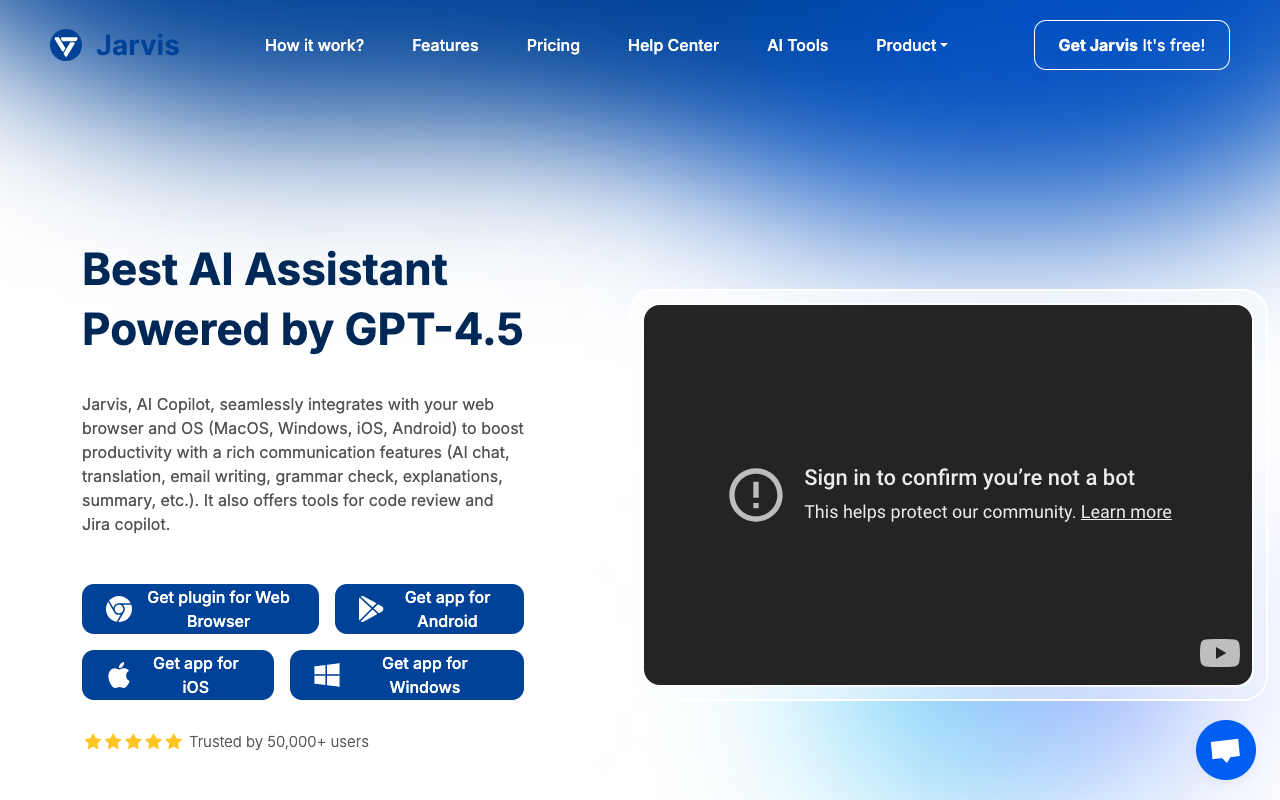 Jarvis 是一款以GPT-4.5为核心驱动的全平台AI助手,主打“跨设备无缝集成”与“多场景效率提升”,覆盖浏览器、桌面端(macOS/Windows/Linux)及移动端(iOS/Android),为个人用户与企业团队提供从日常沟通、内容创作到软件开发辅助的一站式智能服务。