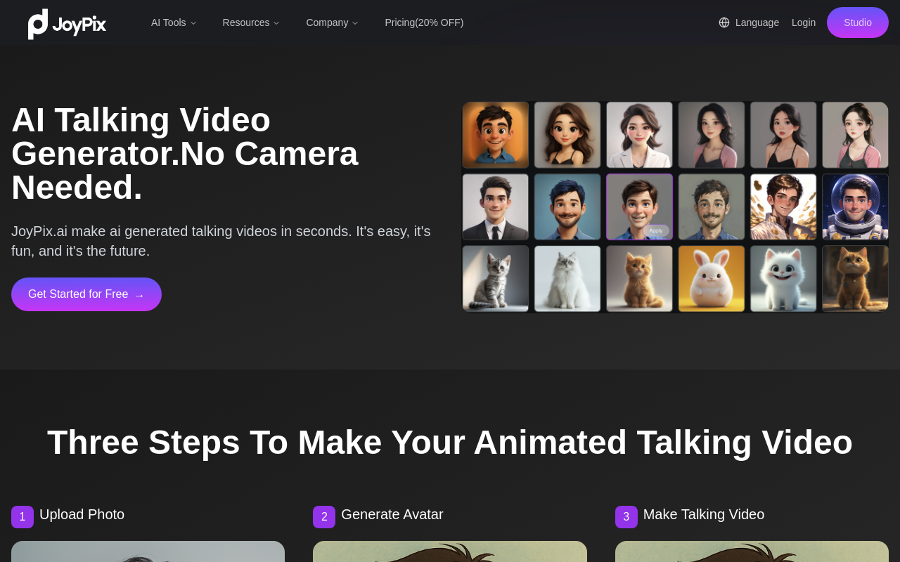 JoyPix.ai 是一个生成式 AI 平台,旨在通过简单的三步操作将静态照片转化为具有逼真动画和语音同步的虚拟头像。用户可以上传照片,选择动画风格,并通过语音克隆或 AI 生成的语音为头像添加对话或表演内容。平台强调易用性和个性化,生成的头像可用于社交媒体、游戏、营销或创意项目。