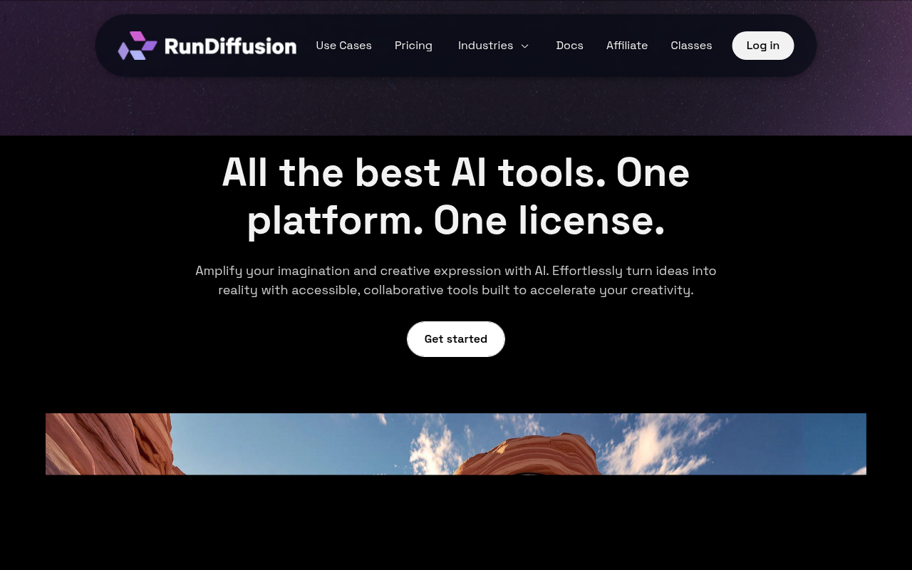 • 多样化工具:整合多种开源(Automatic1111、ComfyUI、InvokeAI)和专有模型(RunDiffusion Photo XL、FX),满足不同创作需求。