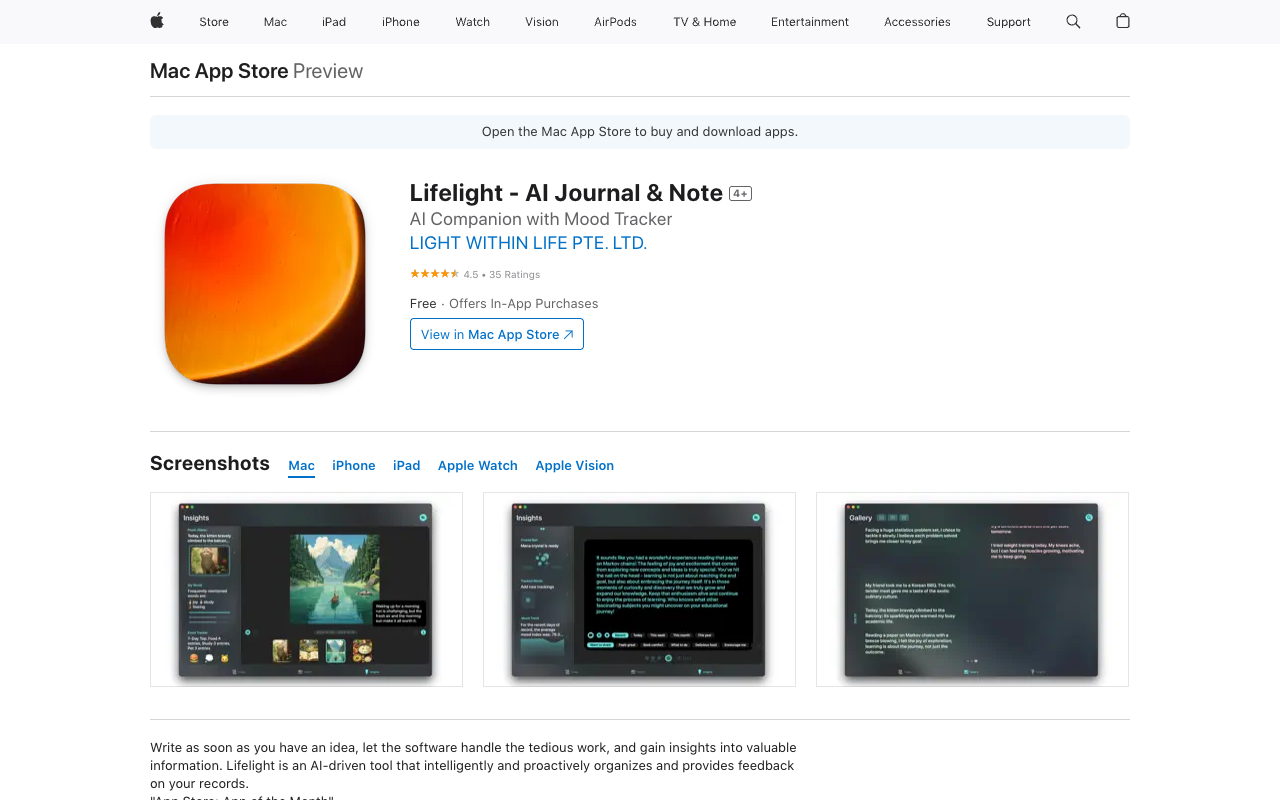 是一个AI驱动的日记记录App,由LIGHT WITHIN LIFE PTE. LTD.开发,主要帮助用户捕捉、组织和从日常思绪、情绪和经历中获得洞察。其核心目的是简化生活记录过程,通过自动化添加天气、位置和情绪分析等任务,让用户专注于写作,而非手动整理。