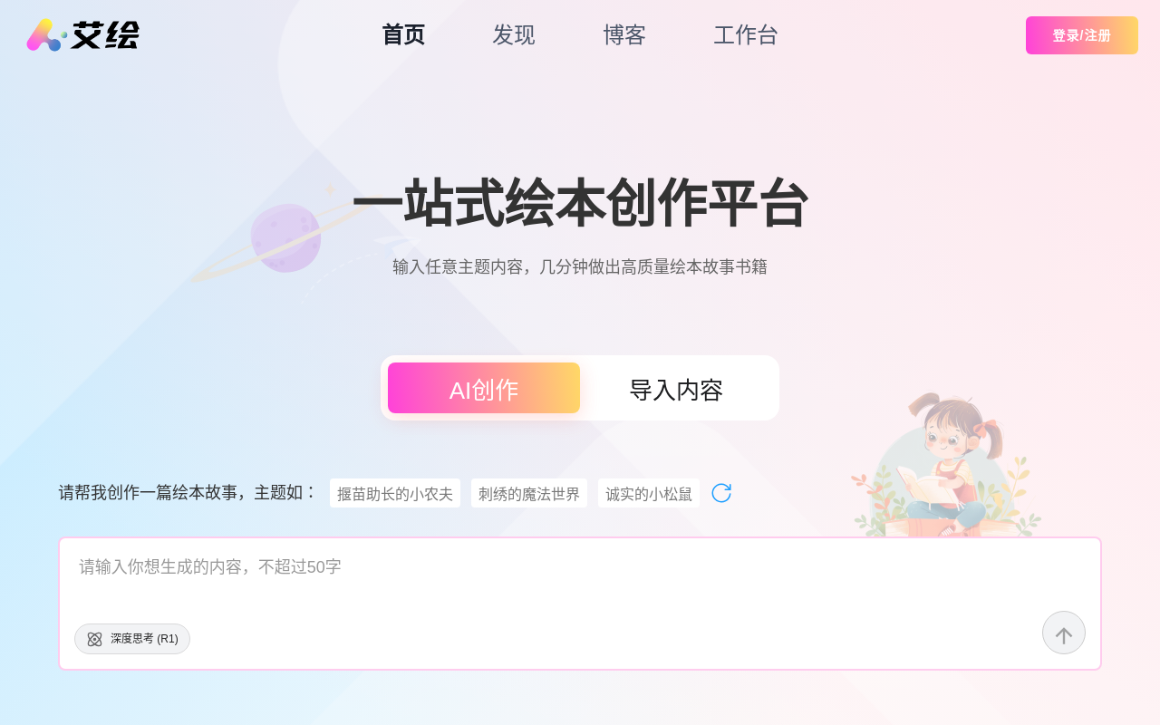 • 艾绘利用AI技术(如基于生成式AI的图像生成模型,可能包括Stable Diffusion或类似技术)自动为故事生成配套的插图。
