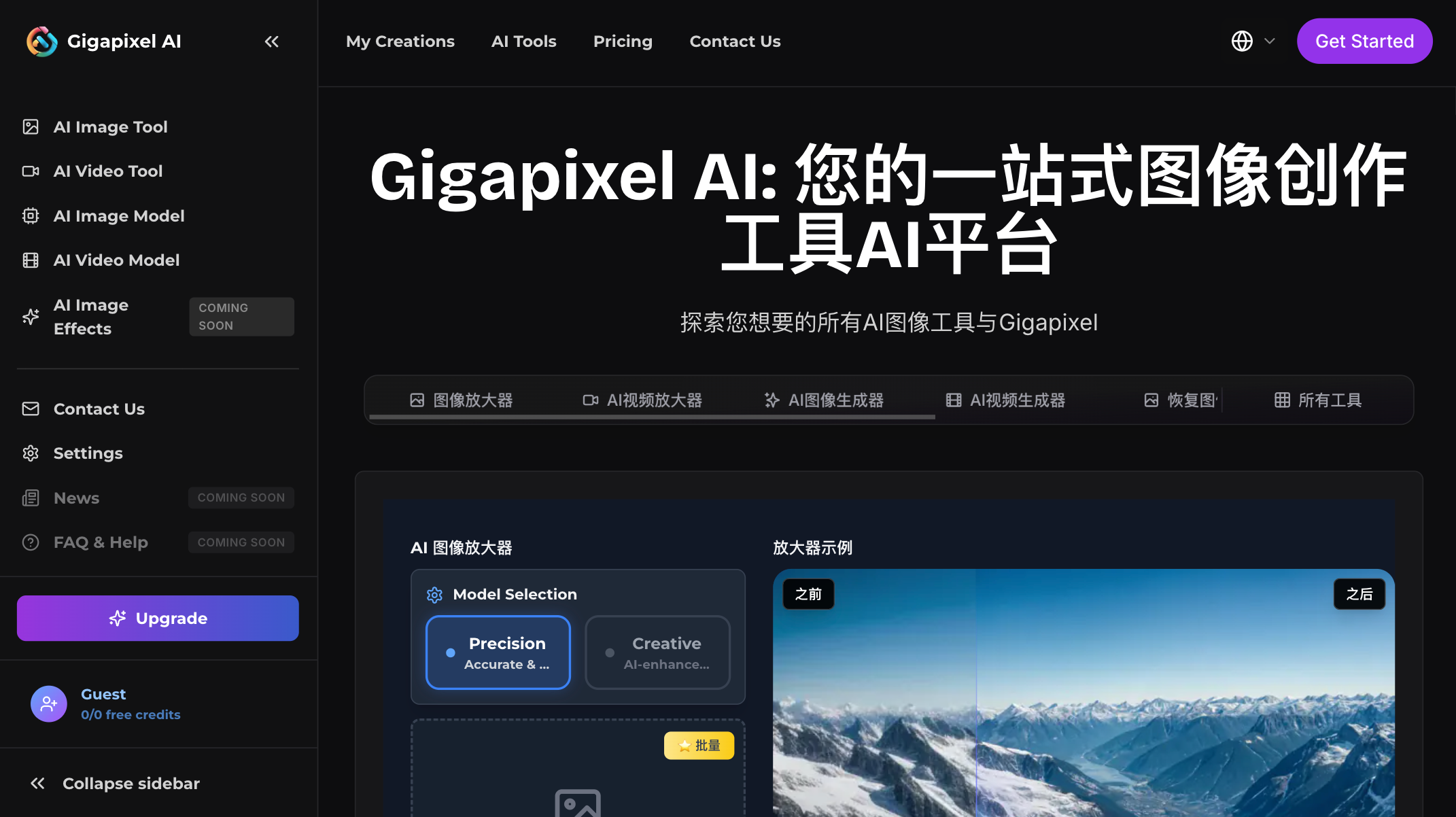 Gigapixel AI 是一站式AI图像+视频创作增强平台,主打AI无损放大、画质修复、高清生成、智能编辑,面向电商、摄影、设计、短视频、游戏、影视修复等全场景,支持批量处理、商用授权,以高保真细节重建为核心优势。
